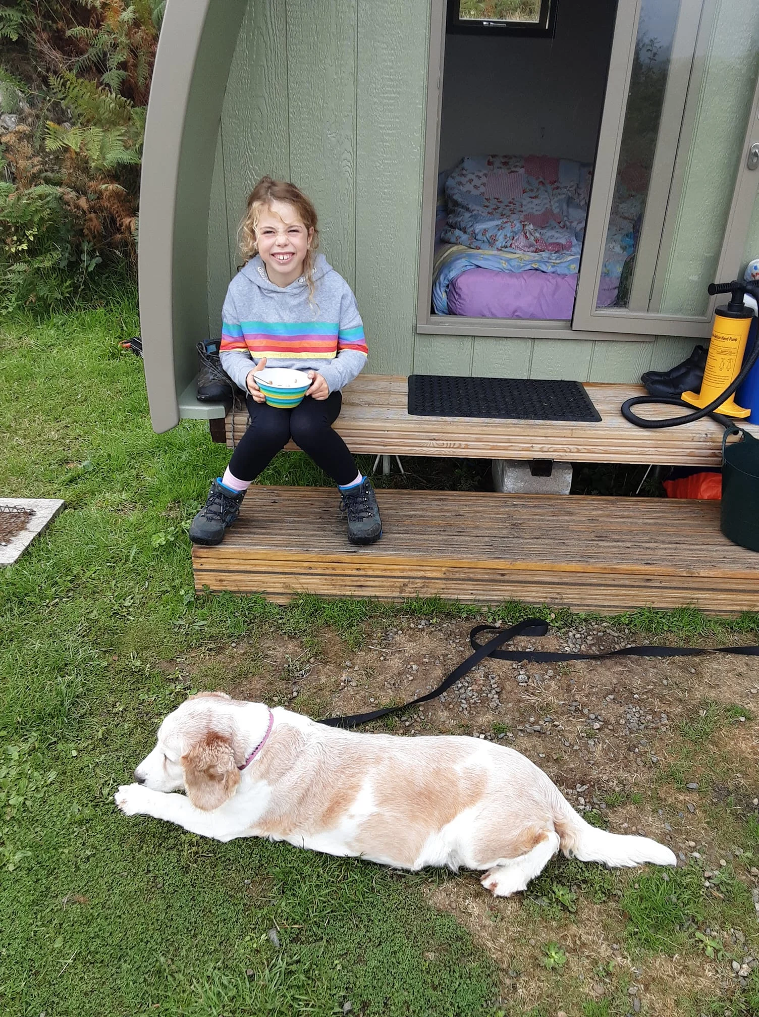 Yes, dogs are welcome to stay in all our pods except our Family Vista and Deluxe Pods.